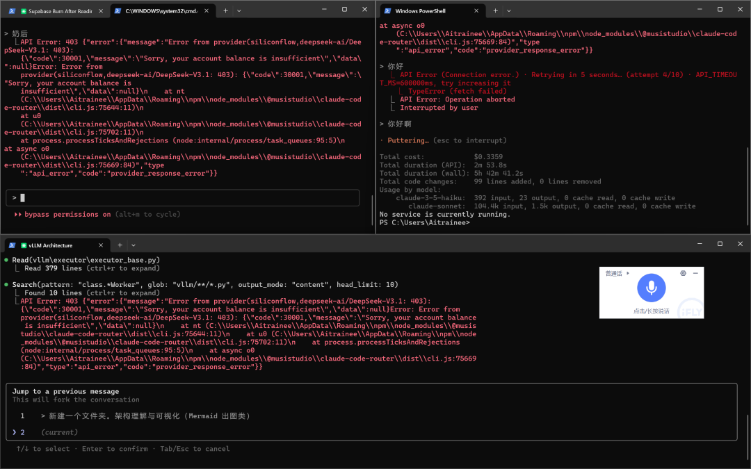 而第2种方法,我使用硅基流动的和openrouter提供的GLM4.5与Deepseek 3.1在测试过程中经常可能出现api调用频率过高或者上下文太长。直接红温。