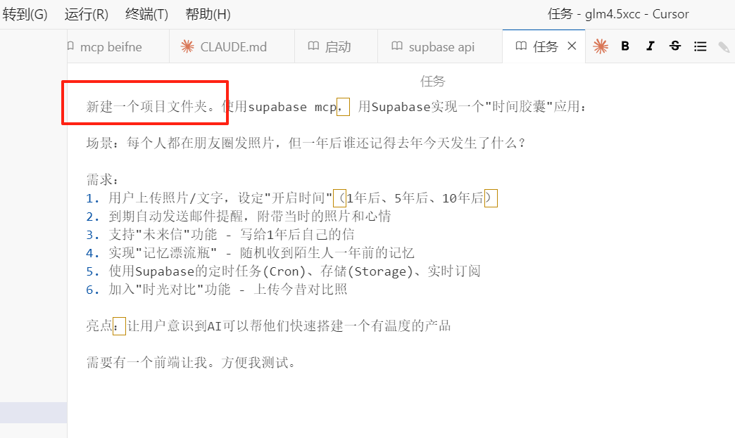 在这个案例中,GLM 4.5表现的不错,调用了Supabase mcp去supabase里创建项目、设计数据库结构、创建表等等。