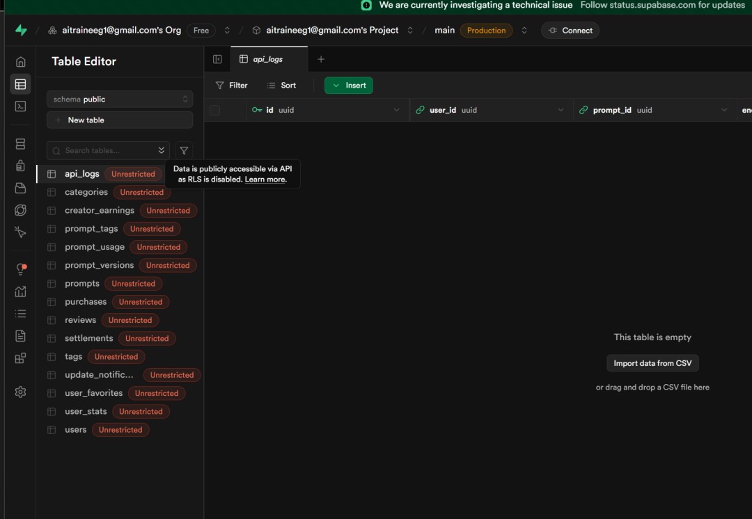 使用supabase mcp,新建一个supabase 项目,然后完成数据库表。完成下面这个任务: