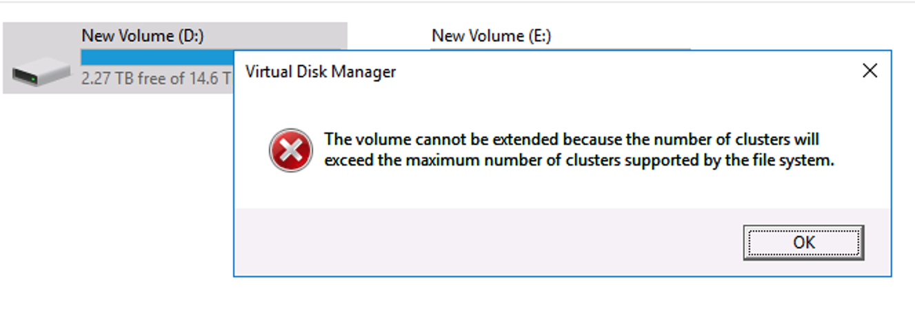 问题:磁盘超过16T,无法扩展卷