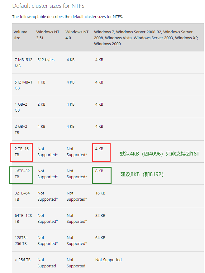 另外,我前几天遇到一个sqlserver的问题(无法使用备份文件'D:\DB_Bak\xxx.bak',因为原先格式化该文件时所用扇区大小为 4096,而目前所在设备的扇区大小为 512),不懂,但看报错貌似跟块大小有关(根因未知,云平台侧硬盘并未调整),不知道调整cluster size会否影响原来文件的使用
