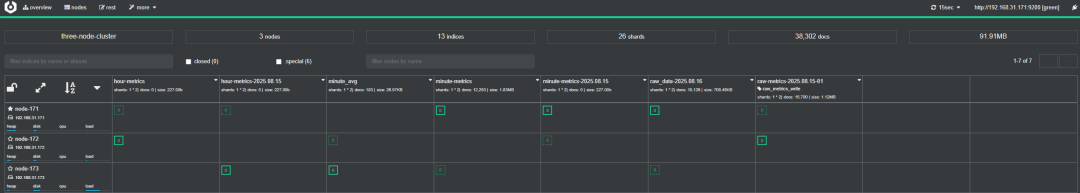 通过图形界面,我们可以很直观查看集群索引的状态。