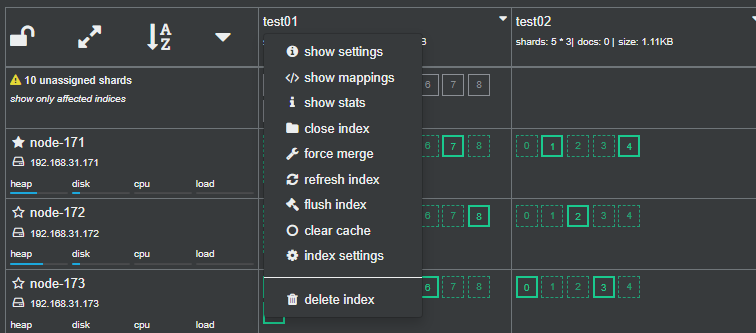 这里我们可以根据索引的状态,对索引做一些操作:调整副本数量,更新Maping等操作。