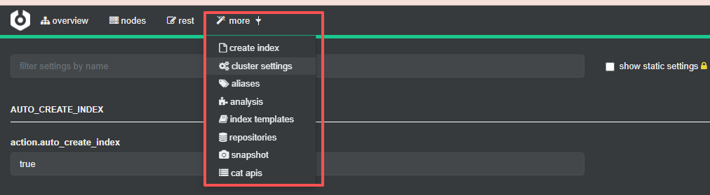 4.2更多功能:创建索引,集群设置,索引别名,索引模板,备份仓库,快照等信息。