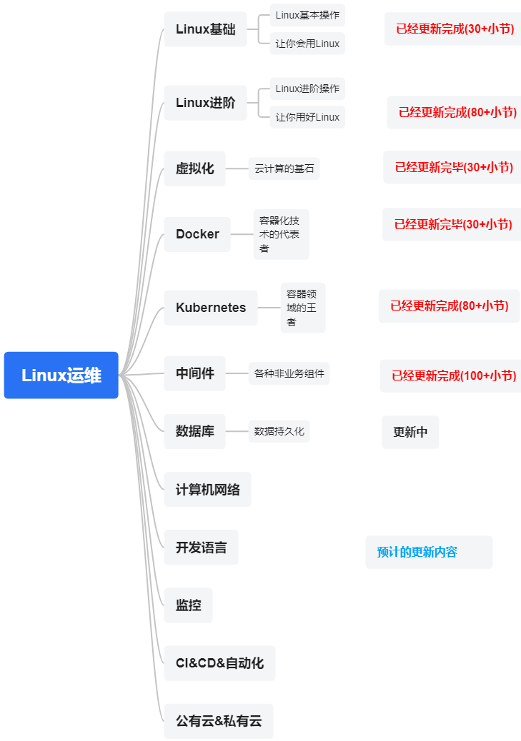 作者介绍:简历上没有一个精通的运维工程师,下面的思维导图也是预计更新的内容和当前进度(不定时更新)。