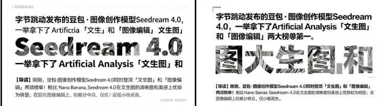 基于文章标题"[字节跳动发布的豆包·图像创作模型Seedream 4.0,一举拿下了Artificial Analysis「文生图」和「图像编辑」两大榜单的第一]"和内容"[xxx】",