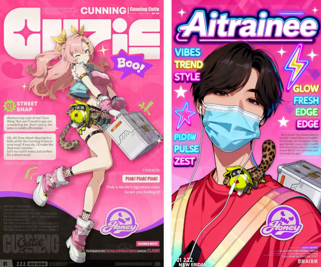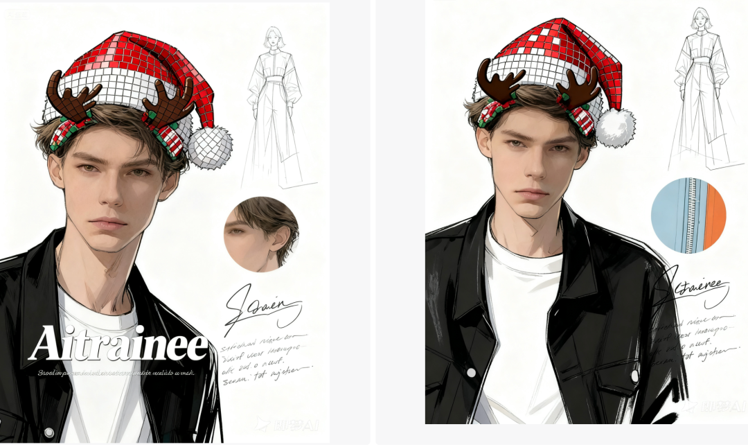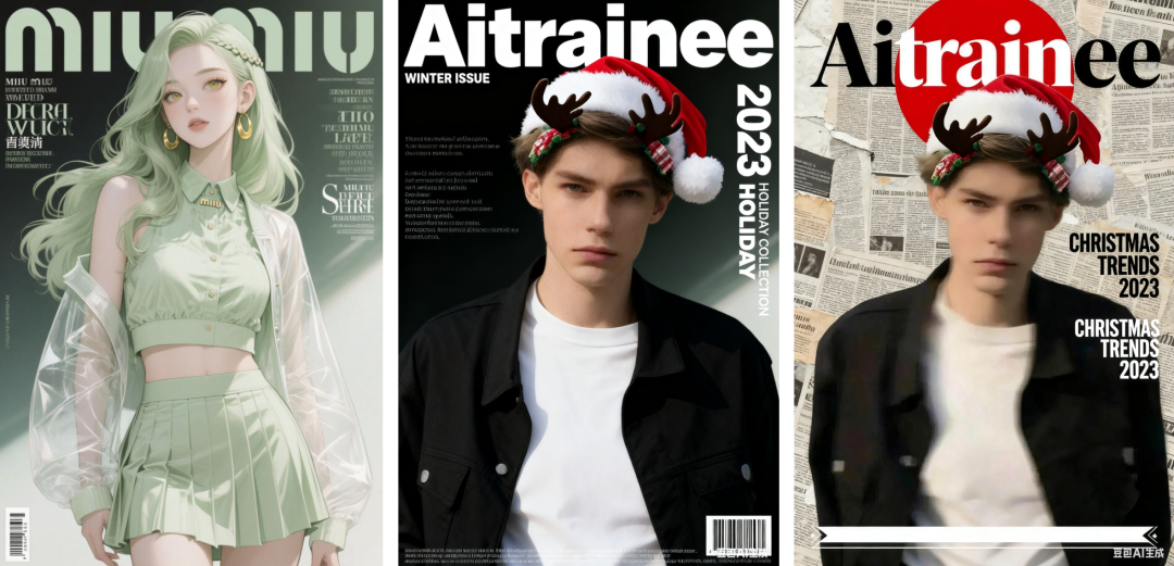参考图像一的风格,制作图像2的封面。字符至少包含:“Aitrainee”,可以再在增加其他的。