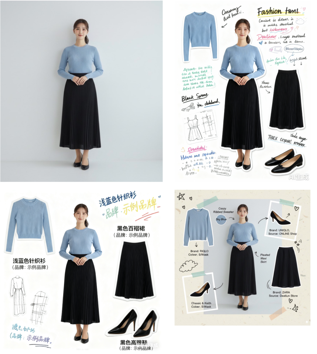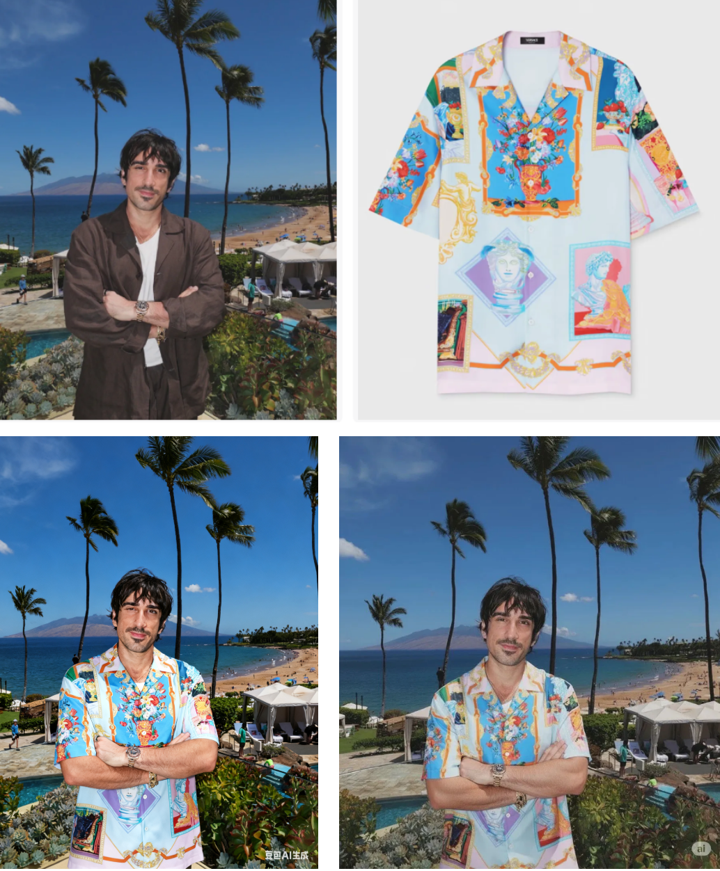 在电商营销场景中,往往需要融合特定人物、商品和场景元素,以前的模型是基于纯文本或单图生成图片,经常难以精准呈现图片要求。而 Seedream 4.0 能够高效贯穿创意测试、商品图生成与零棚拍模特展示等核心任务,不仅支持多场景灵活切换、换装试戴自动展示,还可对细节进行精准调整,全面提升视觉质量与业务响应效率。