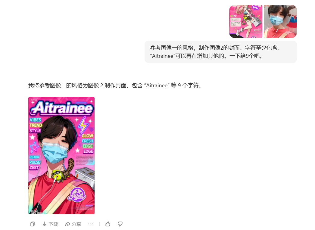 参考图像1的风格,制作图像2的封面。字符至少包含:“Aitrainee”,可以再在增加其他的。