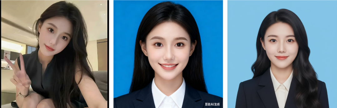 截取图片人像头部,帮我做成2寸证件照,要求: 1、蓝底 2、职业正装 3、正脸 4、微笑