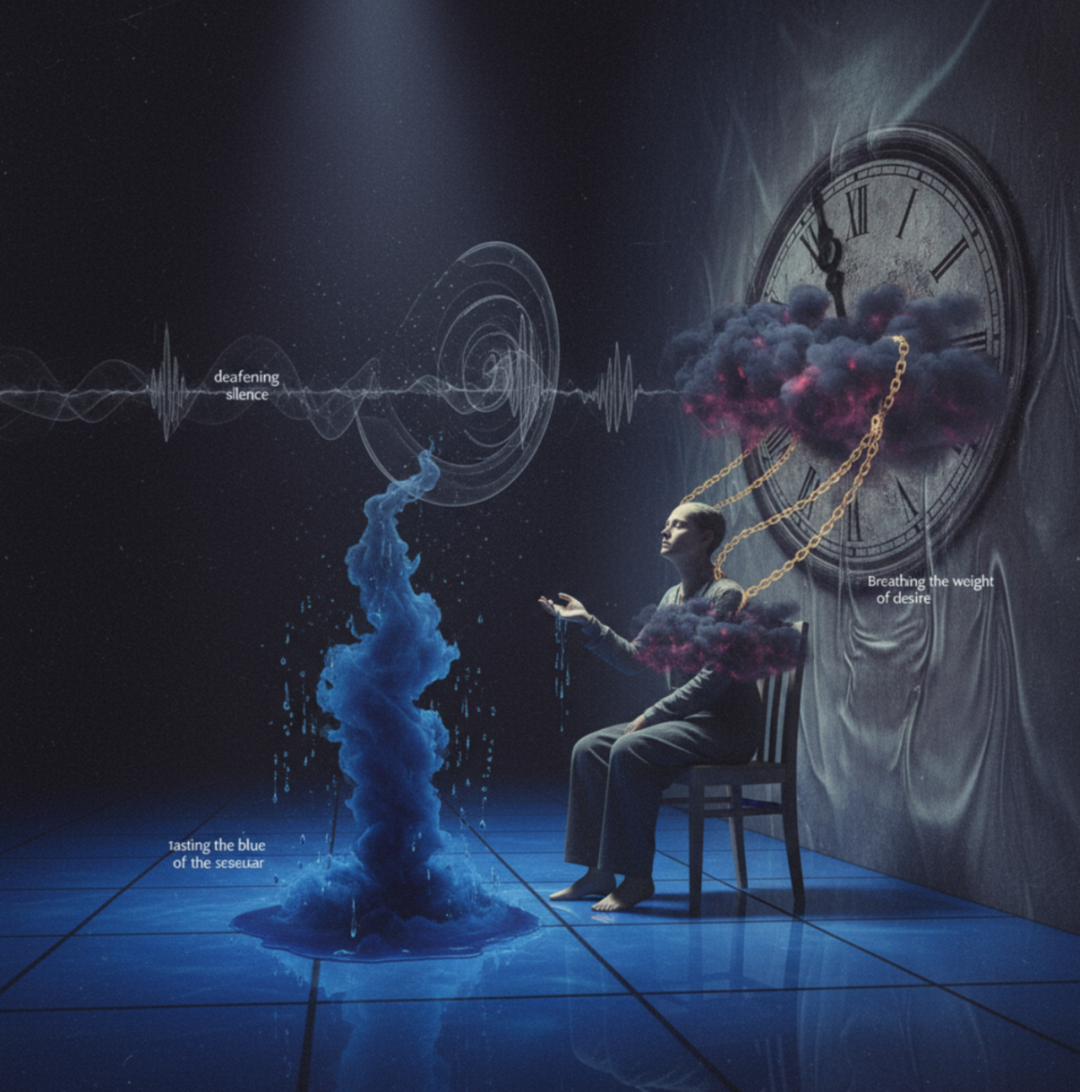 为了探究其理解能力的上限,我尝试了一种超越常规的提示方法——“感官通感”。我们不再提供具体的视觉元素,而是要求它将听觉、味觉、触觉等非视觉感官体验,转化为一幅可被感知的画面。