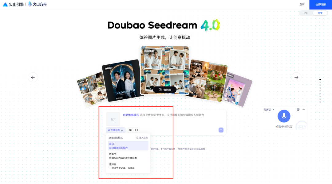 Seedream4.0可以在豆包、Seedreamai、火山方舟这些地方用,火山方舟还提供了这个连环画模式、故事书模式: