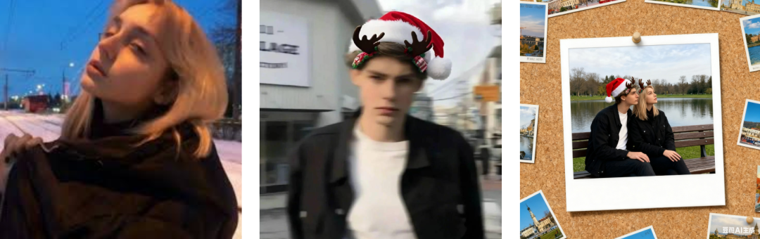 比如这里我让他参考一个游戏角色的海报。然后配上我自己大学时期的照片: