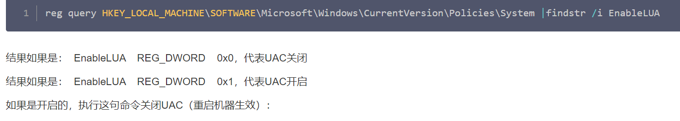 reg add "HKEY_LOCAL_MACHINE\SOFTWARE\Microsoft\Windows\CurrentVersion\Policies\System" /v EnableLUA /t REG_DWORD /d 0 /f