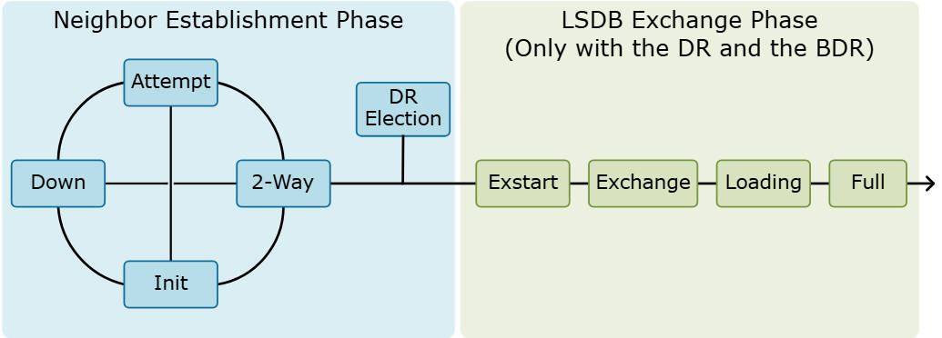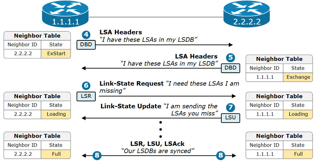 首先双方都要意识到对方的存在,也就是要达到一个2-Way的邻居。其次,双方同步LSDB信息完成后形成Full的邻居。