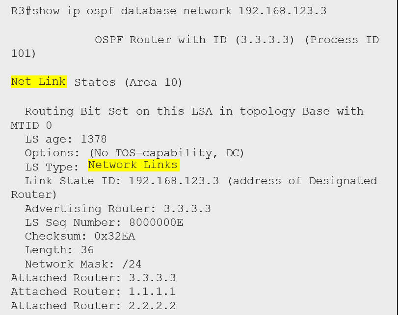 3.3.3.3 1 2WAY/DROTHER 00:00:39 10.1.1.3 Ethernet0/0