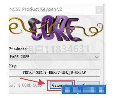 - 打开keygen程序后,点击【Generate】按钮生成注册码: