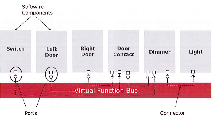 虚拟功能总线(VFB)在应用层中扮演着通信中心的关键角色,它负责处理软件组件之间的通信。然而,在系统配置完成之前,每个组件与电子控制单元(ECU)之间的具体连接尚未确定。只有在系统配置完成后,才能明确将哪些软件组件分配到哪个ECU。因此,虚拟总线实际上代表了ECU内部以及ECU之间的通信,它是一组尚未部署到特定电子控制单元的RTE接口。由于通信是通过端口进行的,所以通信接口必须与这些端口紧密相连。