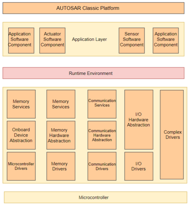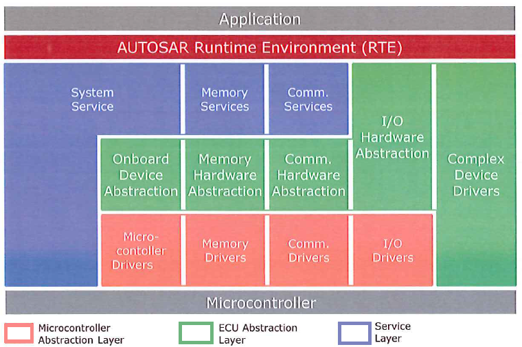 AUTOSAR标准采用了独具特色的三层架构,包括基础软件(BSW)、运行环境(RTE)和应用层(Application Layer),这三层架构相互协作,共同构成了AUTOSAR Classic平台架构的核心。