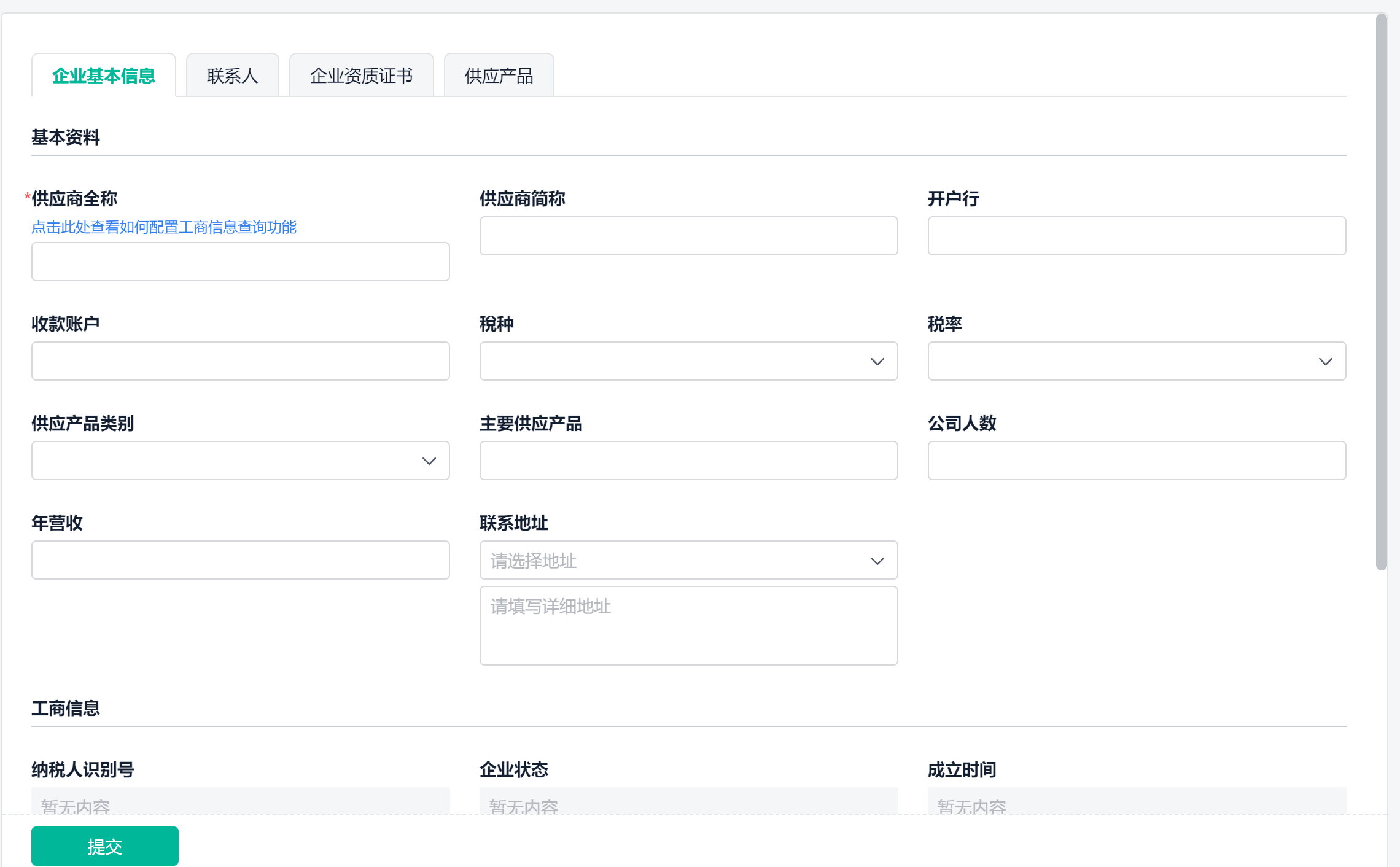 我最先做的,就是在平台上创建了一个供应商信息表,把散落在各个Excel、合同文件里的信息全都归拢到一起,里面的信息主要就包括:
