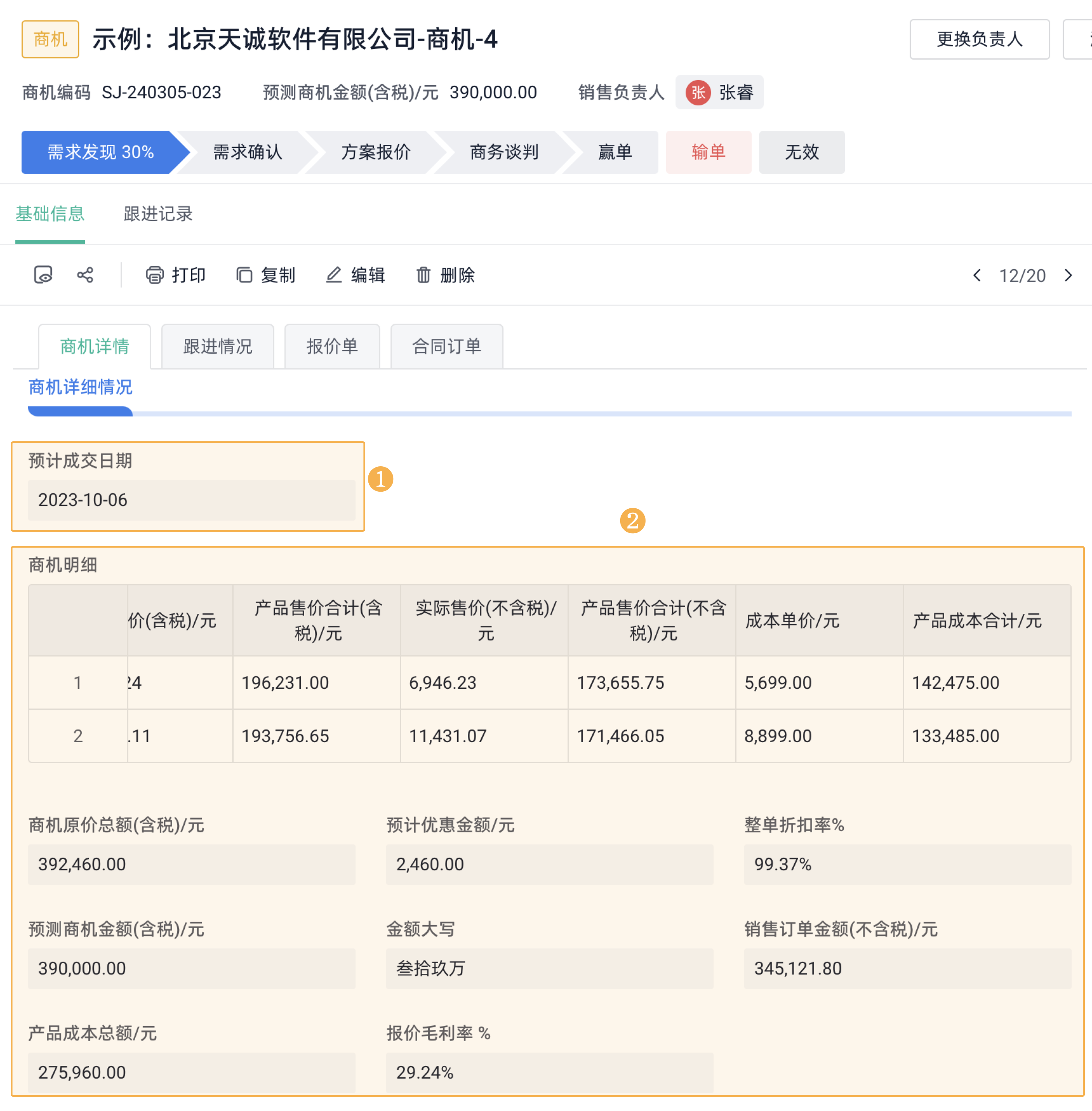 操作技巧: 在CRM系统中,为商机表添加"预计成交日期"和"商机金额"字段。系统会自动根据这些信息计算预测成交金额。