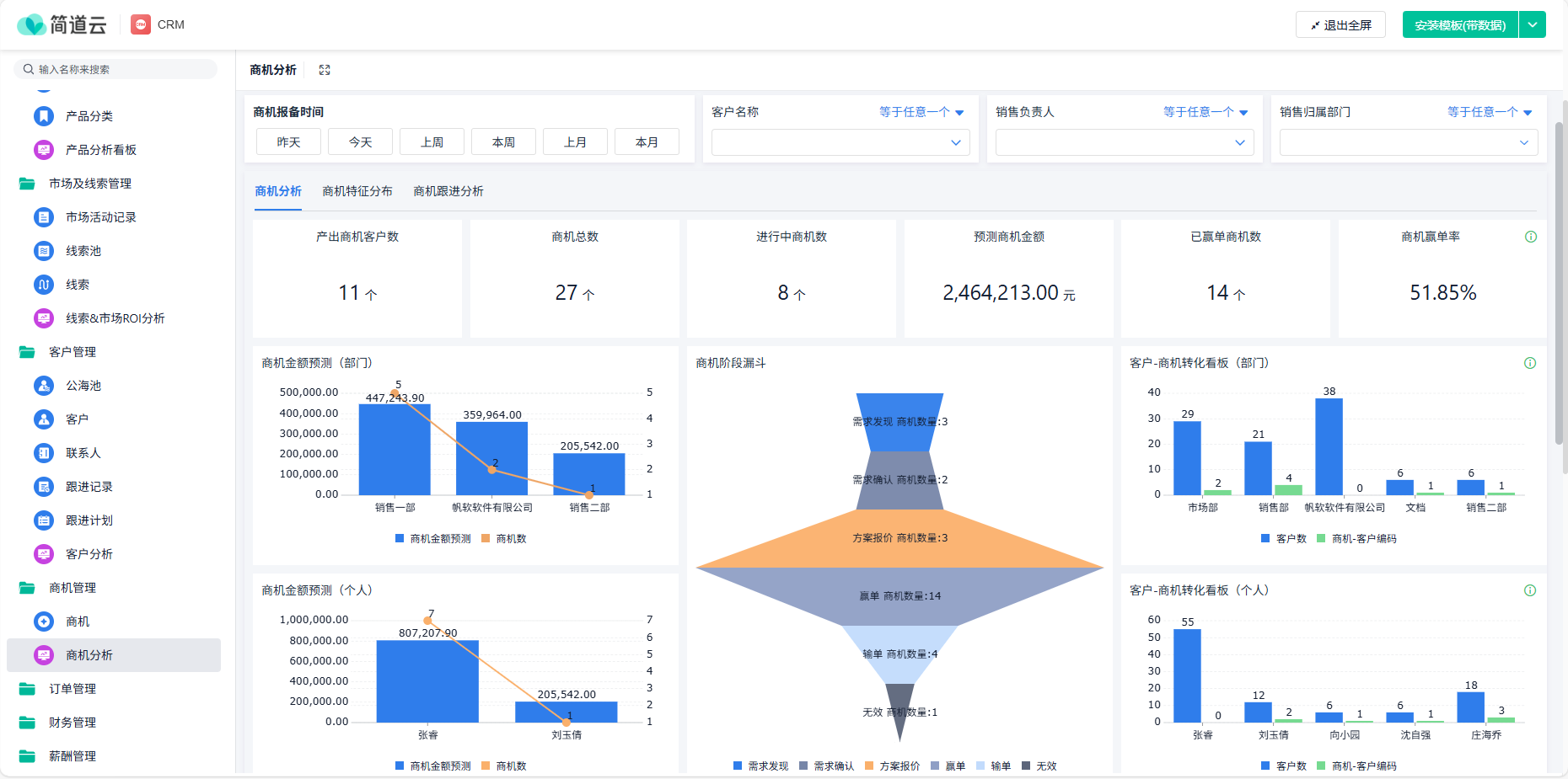 销售预测不是凭空想象,而是基于对销售过程的全面洞察。而商机分析板块,正是解决这个问题的关键。简单说,它就是把销售全流程数据化、可视化,让你能清晰看到每个商机的进展、可能的成交金额,以及预测未来的销售趋势。