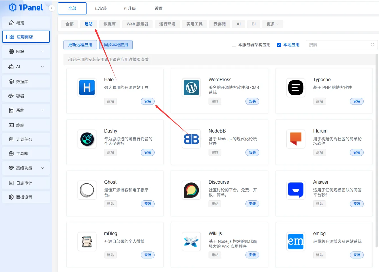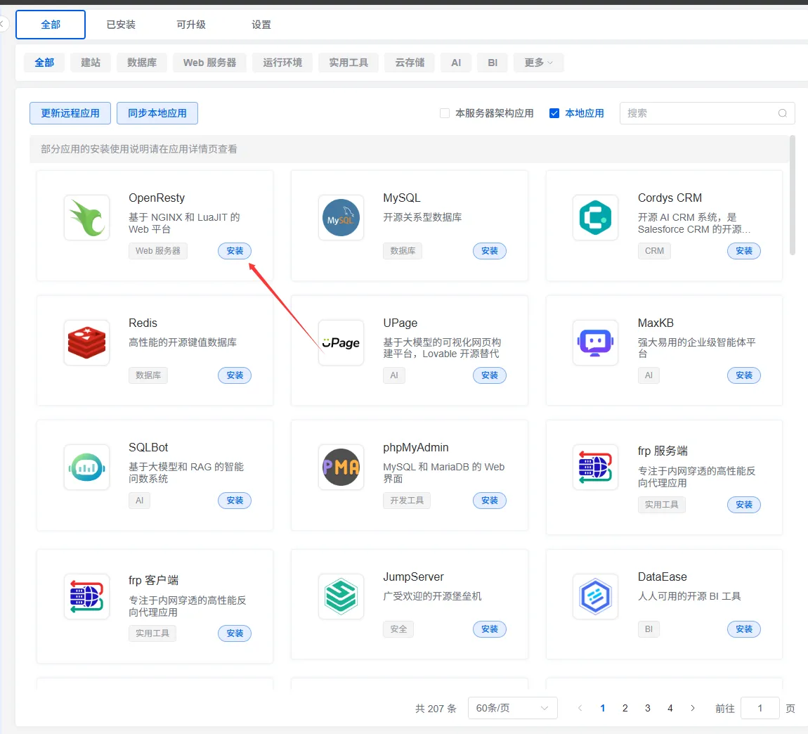 1.我们选择应用商店,然后安装openresty作为web服务器