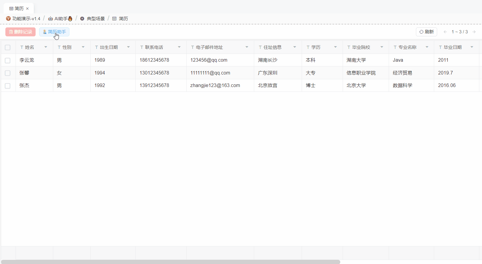例如在“人员入职管理”流程中,公司HR可以通过上传文档/图片内容,让低代码平台AI助手进行内容识别,完成对员工信息档案等关键信息的录入。此功能大幅减少了以往HR需要逐一复制+粘贴的重复录入操作。