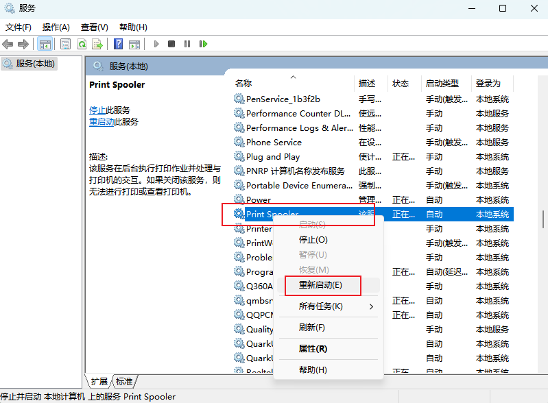 ② 打印服务(Print Spooler)异常会导致打印失败并显示脱机。