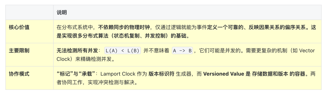 最后我再从Lamport Clock的价值、限制以及协作模式做一个总结: