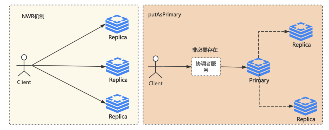 基于上述的认知之后, 我们来对比下NWR与putAsPrimary的写入路径之间的差异: