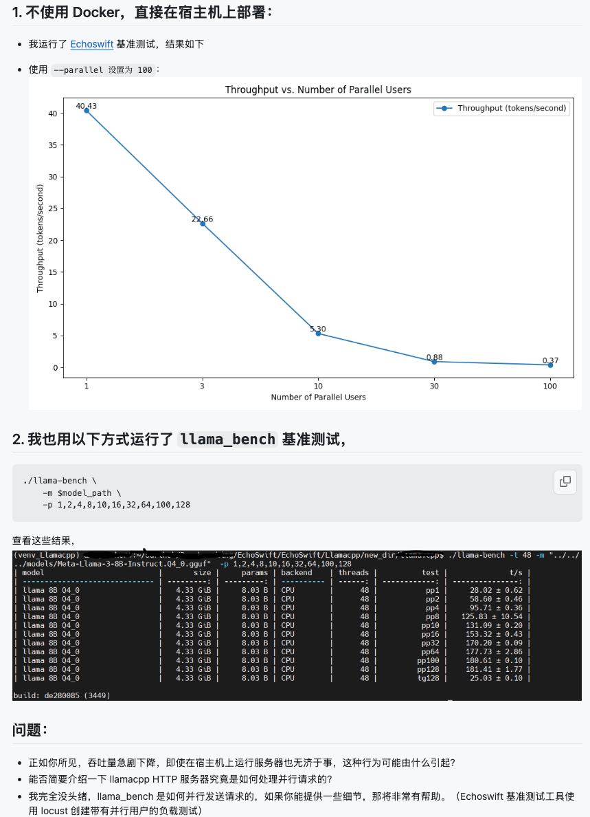 最近在测试 llama.cpp 这个推理引擎的表现,主要是启动 GGUF 格式的量化大模型比较方便