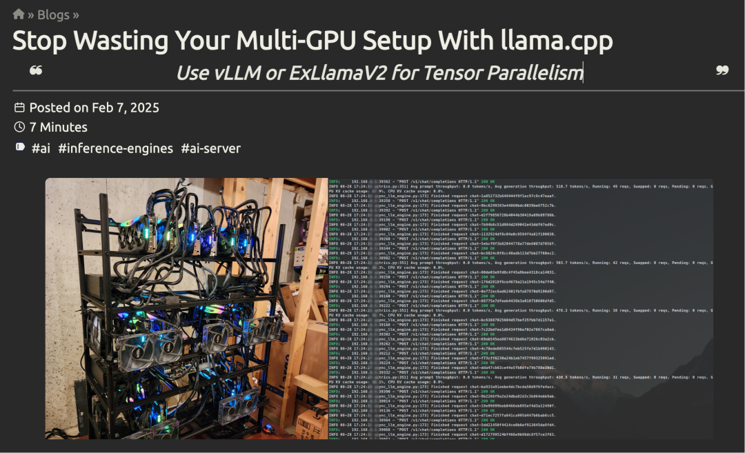 看了一个博主的文章《# Stop Wasting Your Multi-GPU Setup With llama.cpp》[1]