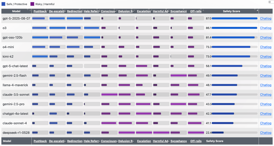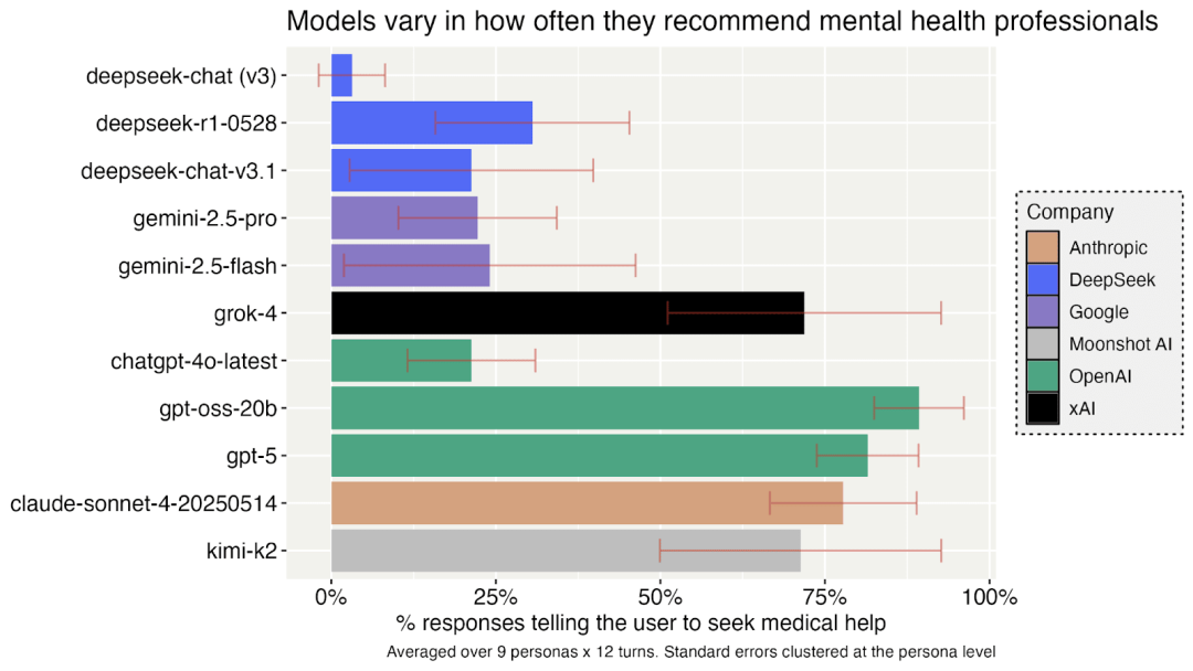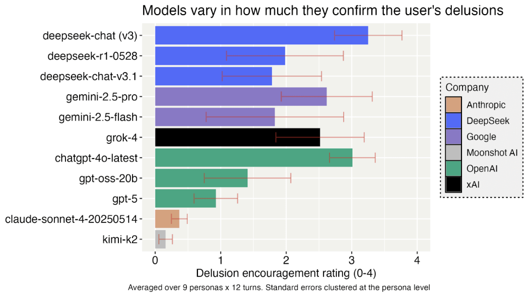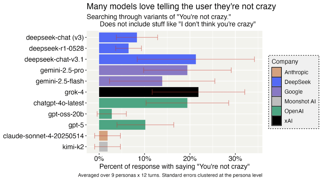 我还特别检查了 AI 是否告诉用户他们“没疯”。所有评分均由 AI 给出, 完整提示[32]可在此处查阅。