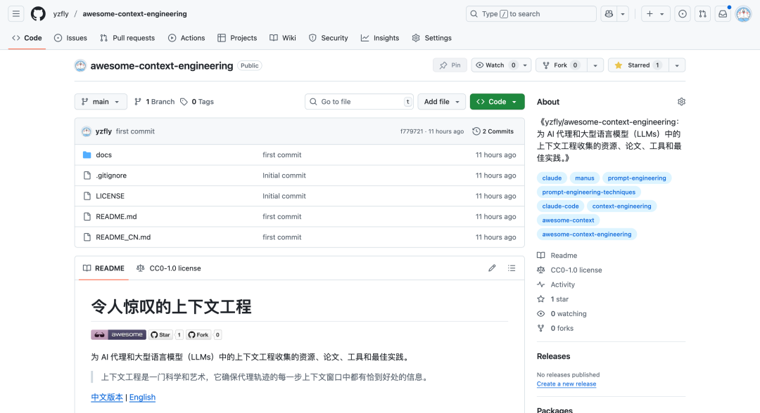 为了更深入了解上下文工程,拉了个专题项目,看过的和收集到的优质上下文工程文章、项目都放里面了,各位大佬点点 star!