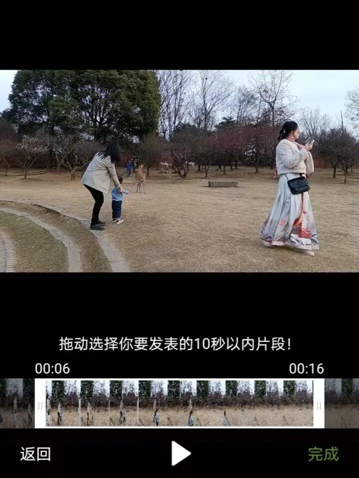 可见裁剪界面下方展现一排不同时间点的缩略图列表,拖动列表图片即可切换待裁剪的视频起止时间段。拖动选好待裁剪的视频片段之后,点击界面右下角的完成按钮,即可自动执行裁剪操作。裁剪之后的视频片段放在App安装路径下的cache目录,完整路径为“我的手机/Android/data/com/iknow.android/cache/视频片段的文件名.mp4”。
