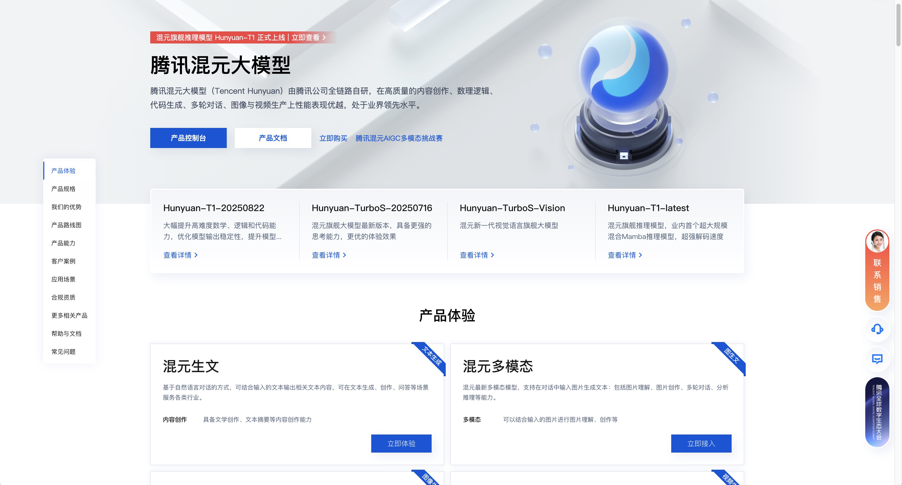 首先就是腾讯混元大模型,腾讯混元大模型(Tencent Hunyuan)由腾讯公司全链路自研,在高质量内容创作、数理逻辑、代码生成和多轮对话上性能表现卓越,处于业界领先水平。混元 API 支持 AI 搜索联网插件,通过整合腾讯优质的内容生态,提供强大的时新、深度内容获取和 AI 问答能力。