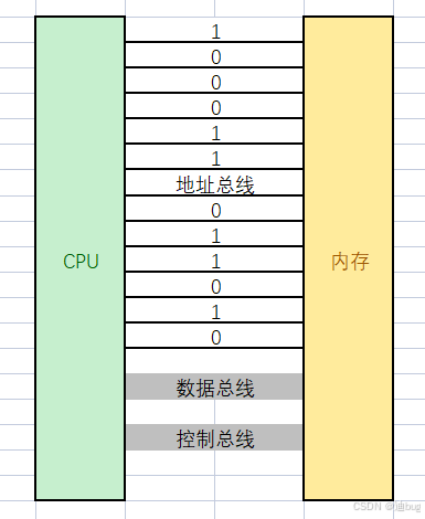⾸先,计算机内是有很多的硬件单 元,⽽硬件单元是要互相协同⼯作的。所谓的协同,⾄少相互之间要能够进⾏数据传递。但是硬件与硬件之间是互相独⽴的,那么如何通 信呢?答案很简单,⽤"线"连起来。⽽CPU和内存之间也是有⼤量的数据交互的,所以,两者必须也⽤线连起来。 不过,我们今天关⼼⼀组线,叫做地址总线。 硬件编址也是如此 我们可以简单理解,32位机器有32根地址总线, 每根线只有两态,表⽰0,1【电脉冲有⽆】,那么 ⼀根线,就能表⽰2种含义,2根线就能表⽰4种含义,依次类推。32根地址线,就能表⽰2^32种含 义,每⼀种含义都代表⼀个地址。 地址信息被下达给内存,在内存上,就可以找到 该地址对应的数据,将数据在通过数据总线传⼊ CPU内寄存器。