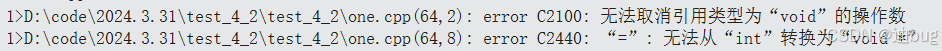 在上⾯的代码中,将⼀个int类型的变量的地址赋值给⼀个char*类型的指针变量。编译器给出了⼀个警 告(如下图),是因为类型不兼容。⽽使⽤void*类型就不会有这样的问题。
