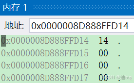 整型变量int占有4个字节的地址,&a取出的是4个字节中最小的那个地址(0x0000008d888FFD14),只要知道了第⼀个字节地址,顺藤摸⽠访问到4个字节的数据也是可行的。