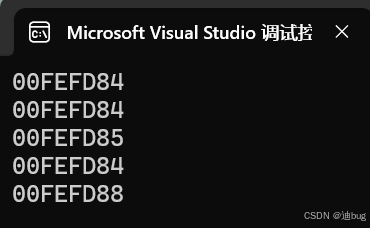 上述的代码就是创建了整型变量a,内存中申请4个字节,⽤于存放整数20,其中每个字节都有地址,上图中4个字节的地址分别是: