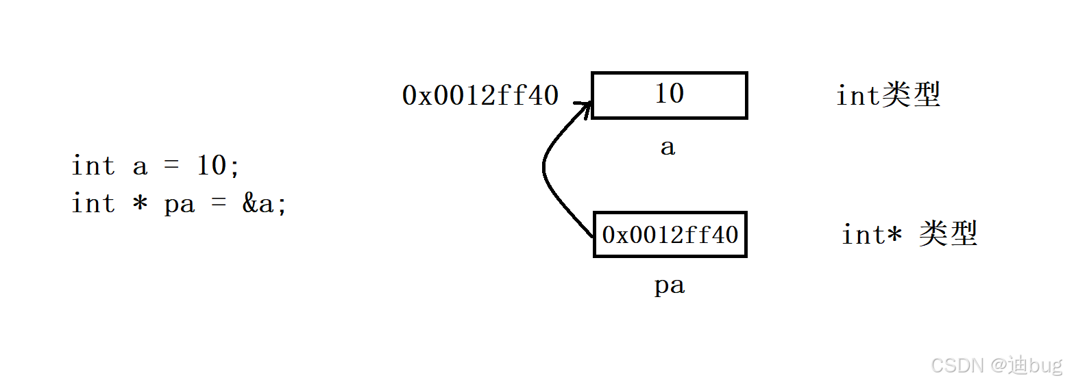 pa左边写的是int* ,* 说明pa是指针变量,而前面的int是在说明pa指向的是整型类型(int)的对象。