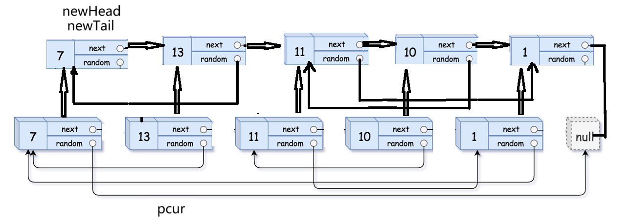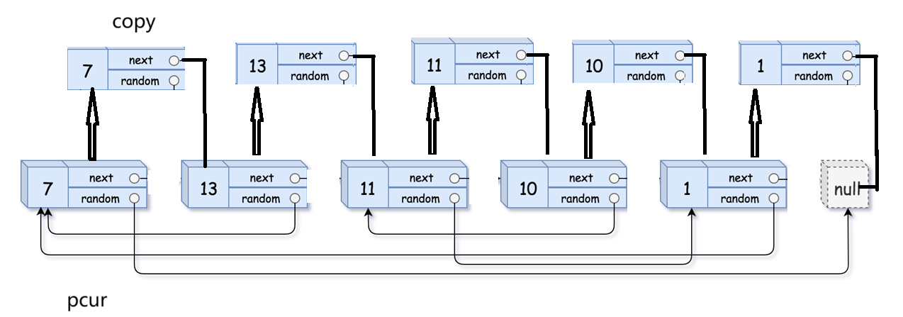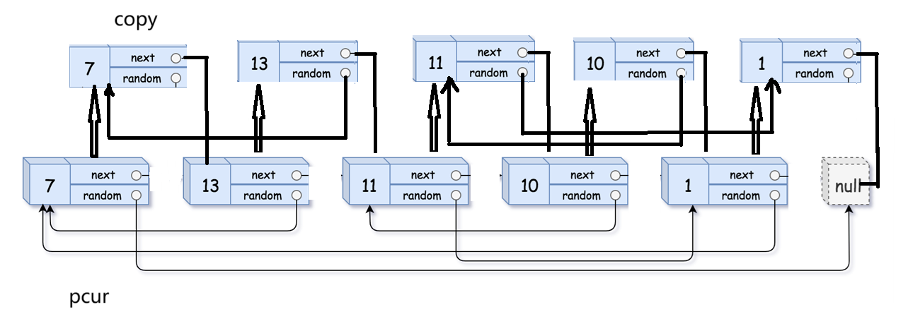3、断开与原链表的链接(注:这里未将所有的radom指针画完)