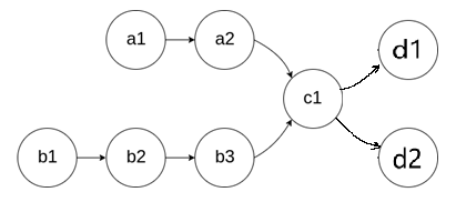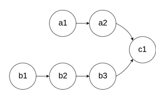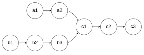 不存在以下这种情况:因为 c1 只有1个next指针,只能指向一个节点
