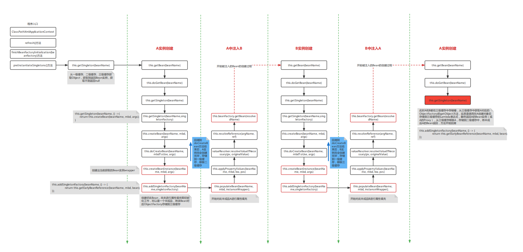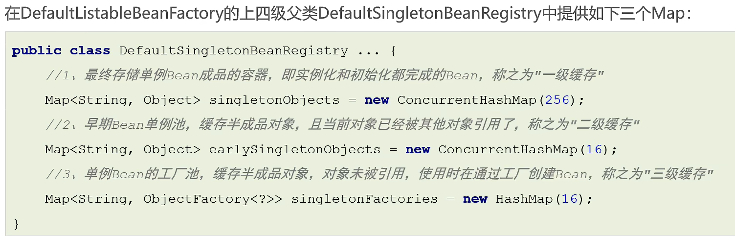 DefaultListableBeanFactory@Autowired等注解逻辑populateBean()填充属性init-method及@PostConstruct三级缓存是解决循环依赖的核心数据结构: