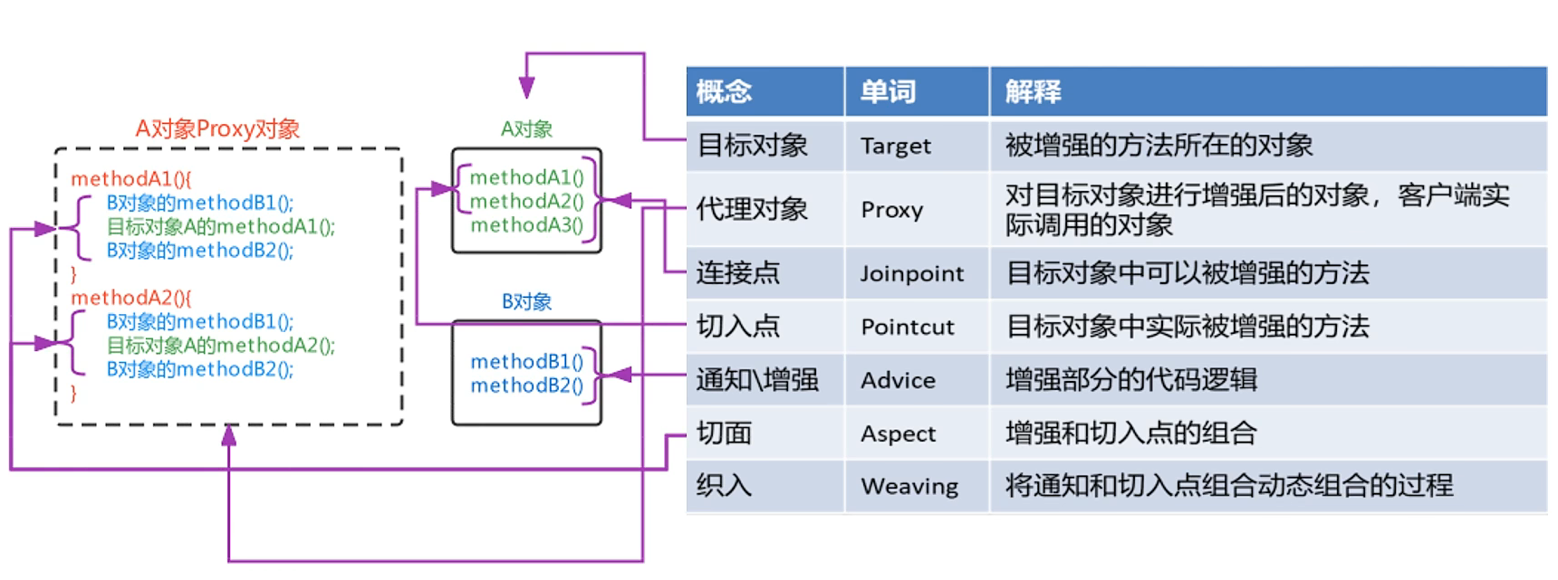 A对象是目标对象,B对象是增强对象