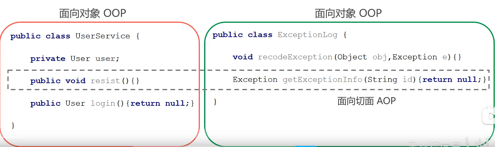 AOP Aspect Oriented Programming 顾名思义就是面向切面编程,是对面向对象编程OOP的一个升华,面向对象编程是纵向对一个事物的抽象,一个对象包括静态属性信息,动态方法信息等。而AOP是横向的对不同事物的抽象,属性与属性、属性与方法、方法与方法、都可以组成一个切面,这种思维去设计编程的方式被称为面向切面编程。
