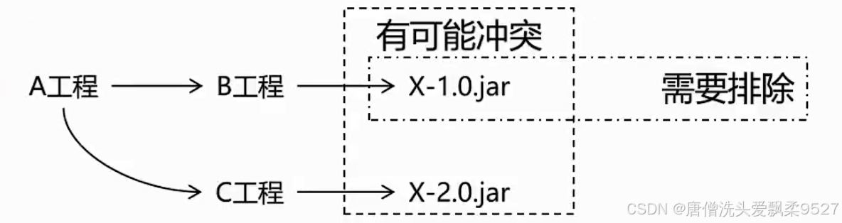 所以配置依赖的排除其实就是阻止某些 jar 包的传递。因为这样的 jar 包传递过来会和其他的 jar 包冲突