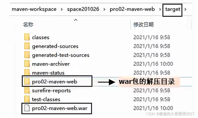 通过查看 war 包内的结构,我们可以看到被 Web 工程依赖的 Java 工程确实是会变成 Web 工程的 WEB-INF/lib 目录下的 jar 包