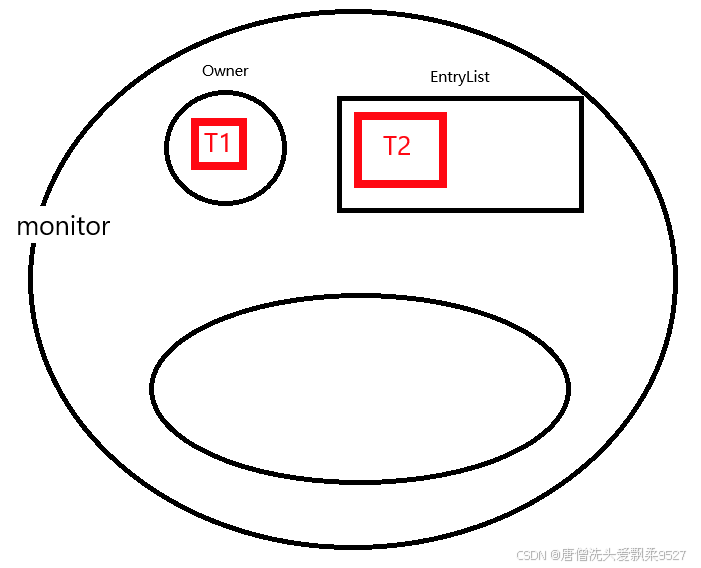 T1被Owner锁定,T2线程开始在EntryList区域等待